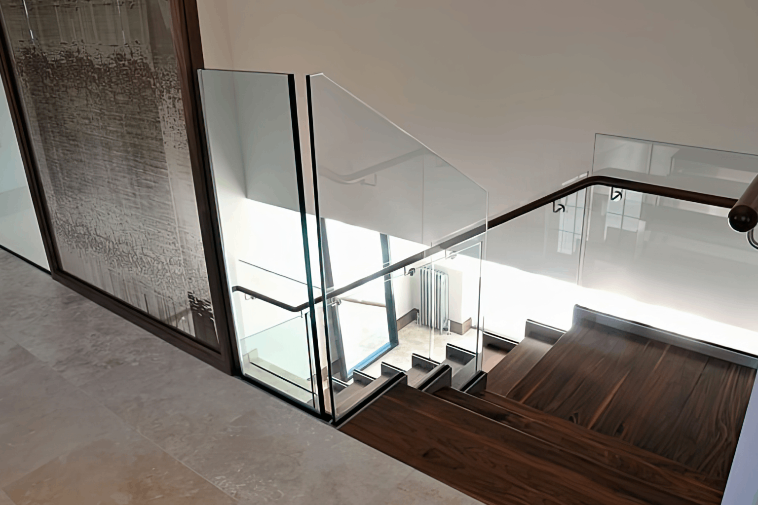 Our railing systems feature tempered or laminated safety glass, combined with aluminum, stainless steel, or custom-designed supports, tailored to your architectural needs.
