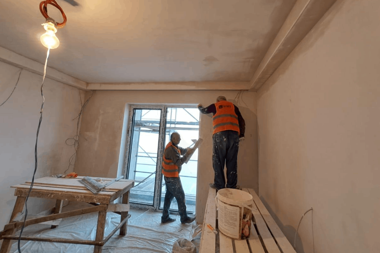 Installation of ceramic tiles and porcelain slabs in bathrooms, corridors, and other areas
