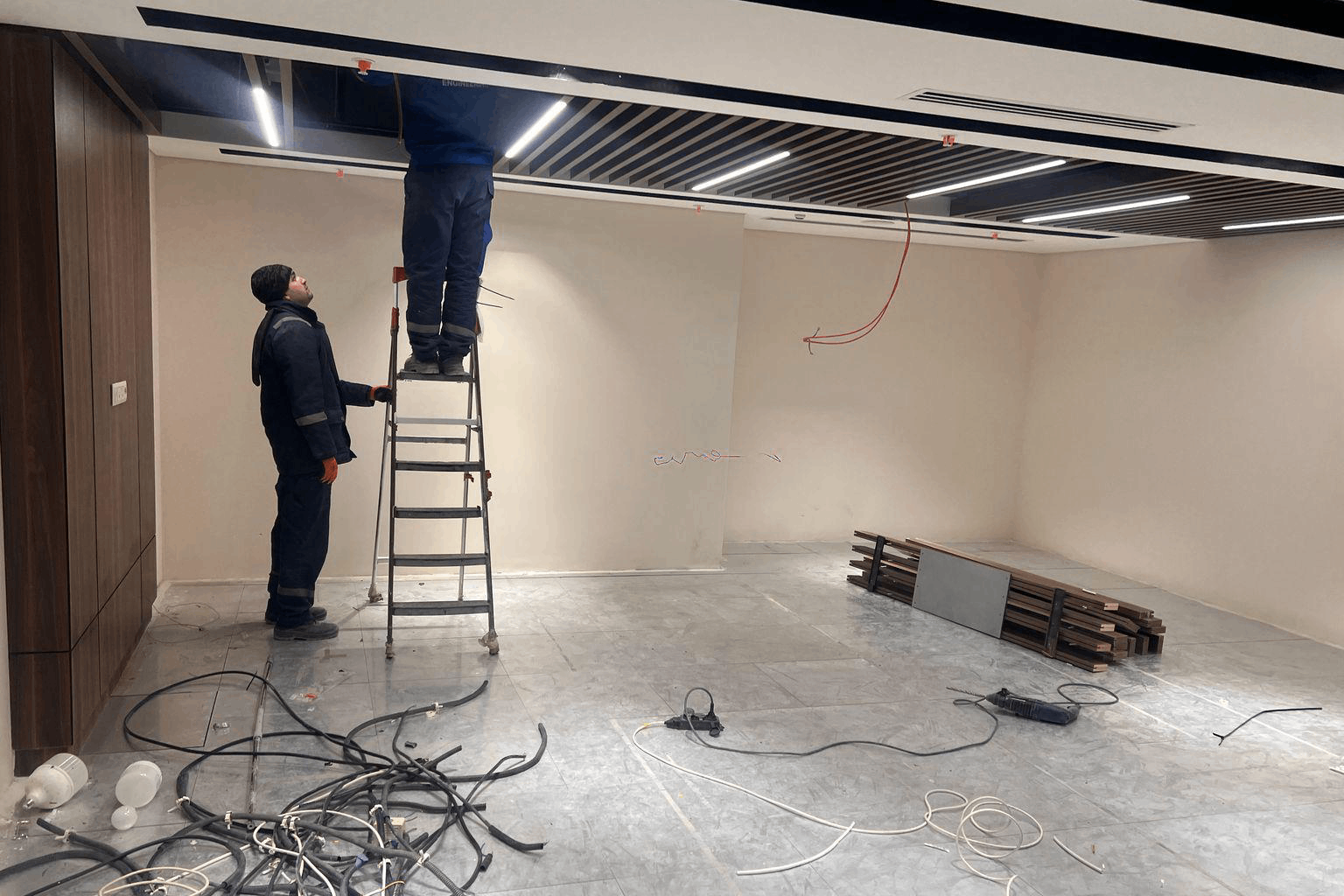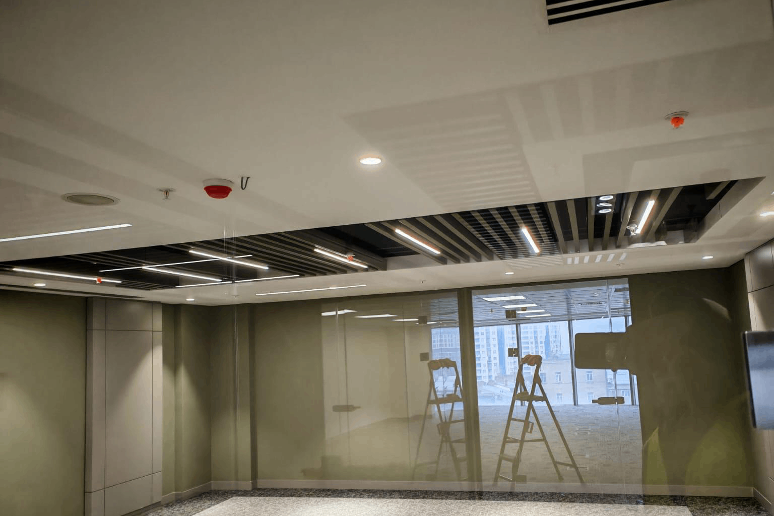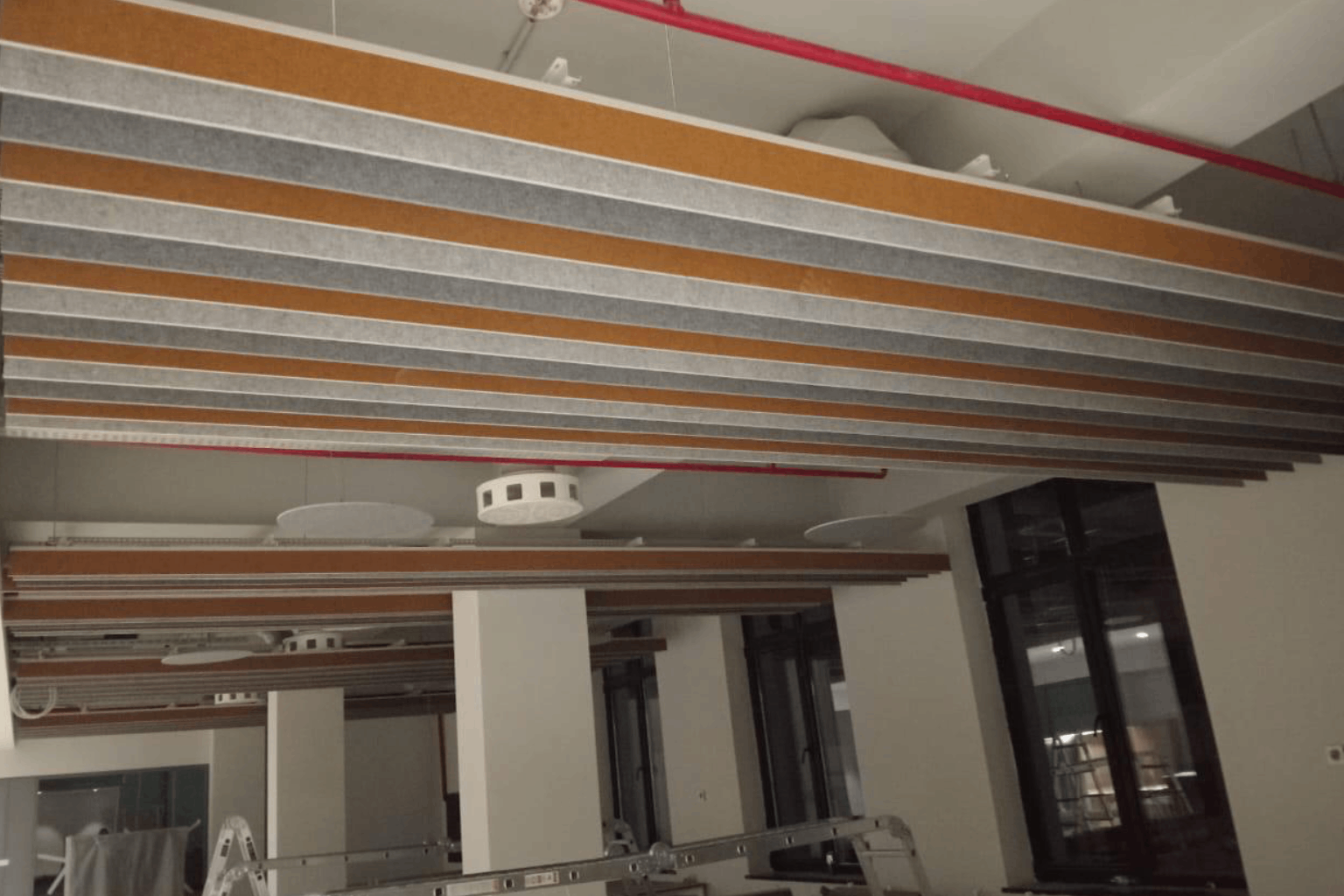 Aesthetic and acoustic solutions were achieved through the installation of suspended ceilings and baffle systems, ensuring visual consistency and functionality in interior spaces.